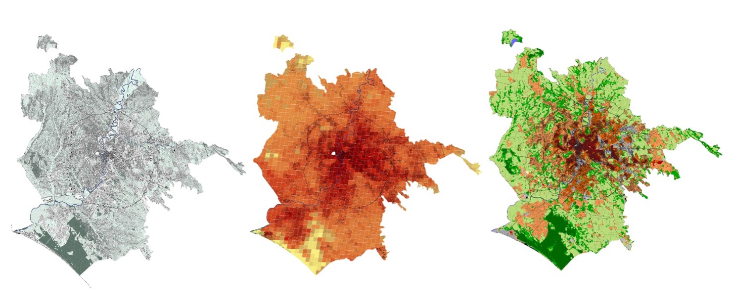 La distribuzione del fenomeno dell’Isola di Calore Urbana a Roma è profondamente legata alle morfologie dei suoi spazi aperti e dei suoi tessuti edilizi. Per averne una visione aggiornata l’Unità Operativa di Roma Tre ha graficizzato e messo a confronto un set di dati (fonte NASA MODIS), forniti dal Dipartimento di Epidemiologia della Regione Lazio nell’ambito di una ricerca passata (cfr. https://www.deplazio.net/climactions/index.html) che hanno una definizione spaziale molto approfondita – una griglia di 1 km X 1 km – ma si fermano all’estate 2010, con un set di dati molto più recenti (estate 2020), raccolti e resi disponibili nell’ambito del progetto MAPPAROMA (https://www.mapparoma.info/mappe/mapparoma36-quanto-fa-caldo-nei-quartieri-di-roma/). I dati climatici sono poi stati confrontati anche con dati morfologici (in particolare alla mappatura delle Local Climate Zone, https://lcz-generator.rub.de/global-lcz-map), con dati regionali sull’inquinamento e con alcuni dati di carattere socio-economico (fasce fragili di popolazione e redditi medi). Il settore orientale della città risulta essere il più critico su quasi tutti i livelli di indagine; è dunque in quest’area che è stato individuato il caso studio per lo sviluppo delle sperimentazioni progettuali: il quartiere di Centocelle.